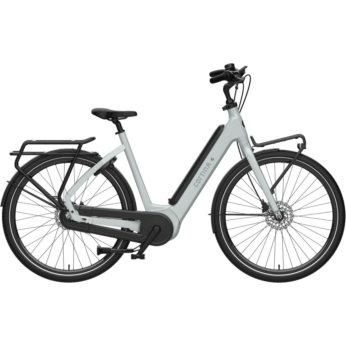 Cortina elektrische Unisex-fiets Common Intergrated in framemaat 57cm, kleur: Sea Grass. Uitgerust met een Shimano Nexus 7 versnellingsnaaf, hydraulische schijfremmen voor en achter, Bosch ActiveLine Plus systeem met middenmotor, wordt geleverd ZONDER accu en acculader. Kleurnummer: ??? . Opvallende details: aluminium frame, in frame ge??ntegreerde accu en voordrager met het MIK-systeem. Vergeet niet om op samenstellen te drukken en de bijbehorende adapter, accu en lader ook te selecteren.