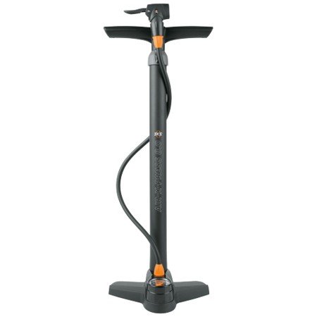 De SKS AIR-X-PRESS 8.0-vloerpomp heeft een uitstekende prijs-prestatieverhouding en een modern design. De hoogglans belettering op de matzwarte buis ziet er mooi uit en de geleiding langs de verlengde buis zorgt voor een opgeruimde uitstraling. Het geribbelde oppervlak van het handvat zorgt voor een goede grip tijdens het pompen en voelt daarnaast prettig aan. De vloerpomp is uitgerust met een manometer voor een nauwkeurige drukregeling (weergave in bar en psi). Deze MULTI VALVE-ventielkop is geschikt voor alle ventielen. Met deze fietspomp pomp je fietsbanden eenvoudig op tot 8 bar/115 psi.